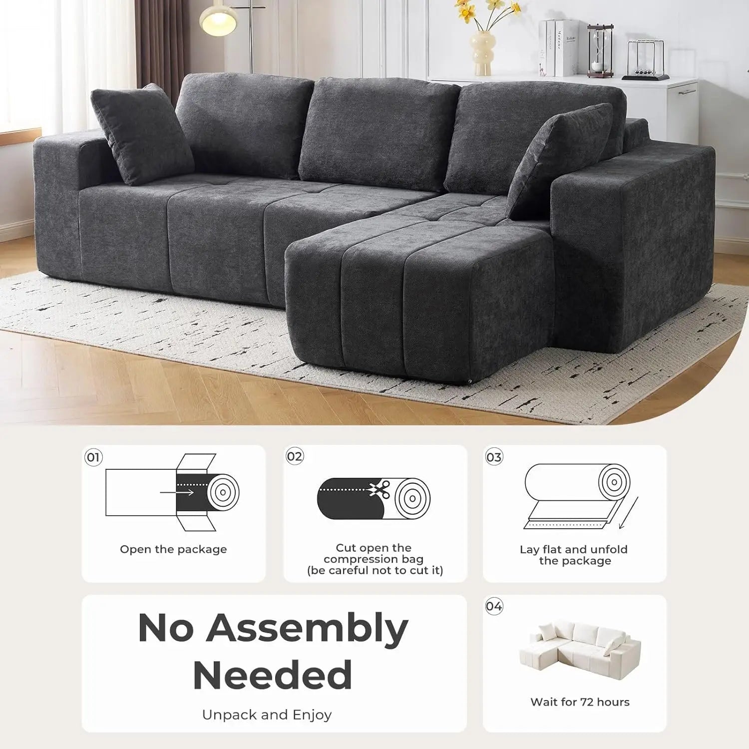Assembly: No tools or assembly required; the sofa expands to its full shape within 72 hours of unpacking.